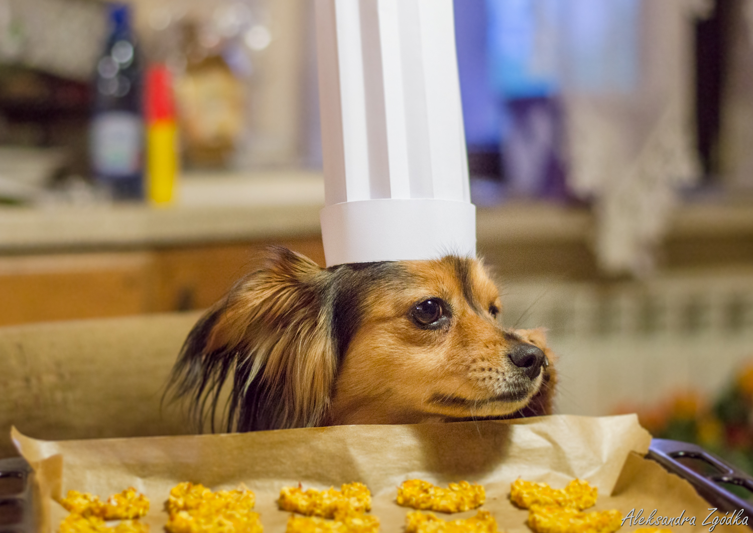Nie wyszły jakoś niesamowicie smaczne (wg mnie, Milka ma inne zdanie :P) i trochę gumowate (chociaż dzięki temu łatwo jest je podzielić), ale patrząc na to ile kosztowały nas wysiłku i czasu, nie ma się czemu dziwić :D Najważniejsze, że Milce smakują :)